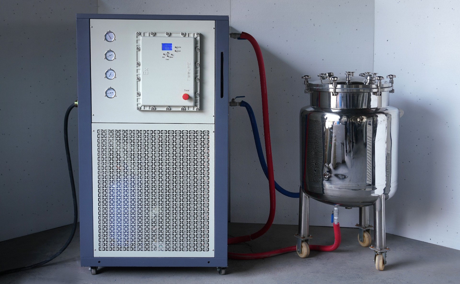 設備組成:防爆密閉低溫冷卻液循環(huán)泵配套+不銹鋼反應釜